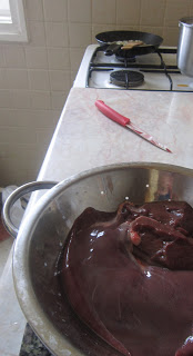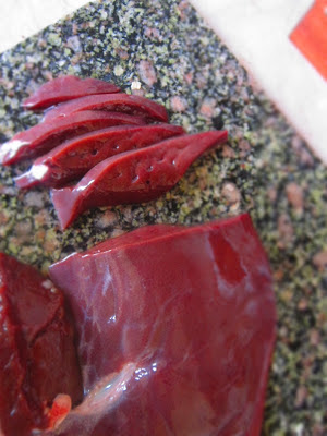 Annyira jó lett a vacsora!! A vágókőről kóricáló nyers máj, mint egy nagy csiga csúszkált amíg vágtam. Bevallhatom, hogy az egyik kedvencemmé vált az állaga és az érzékenysége, a mélyvörös színe miatt. Gyönyörű alapanyag.
