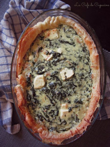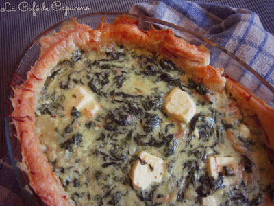 A tojásokat felverjük és összekeverjük a liszttel. A leveles tésztát egy kiolajozott formába egyengessük és a széleit vágjuk le. Tegyük az aljába a húst, majd a hűlt spenótba belekeverjük a tojásokat és átkeverjük. Végül ráborítjuk a húsra.