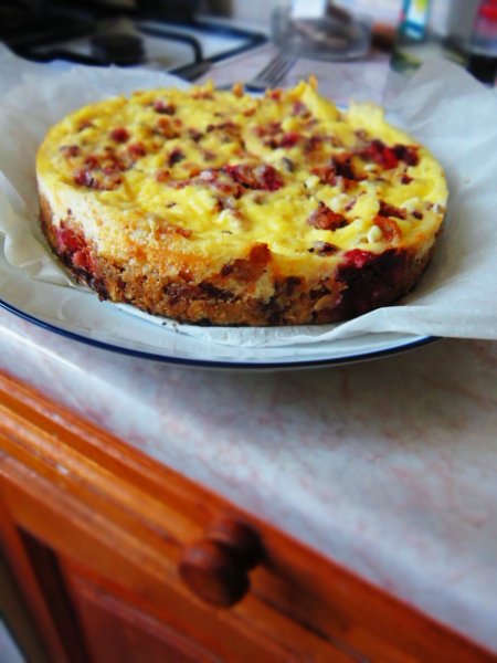 A krém hozzávalóit dolgozzuk össze és öntsük rá a zabos tésztalapra. Süssük addig, amíg úgy nem látjuk, hogy elkezd szilárdulni a teteje. Hagyjuk bent a sütőben lekapcsolás után, várunk a szeleteléssel addig míg langyosra nem hűlt.