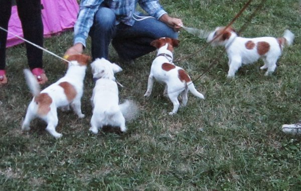 Jack Russel terrierek általános, izgatott legyezőzés közben.