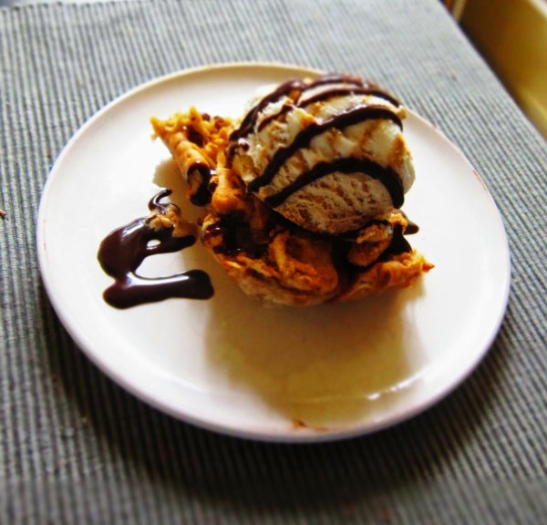 Utolsó lehetőségként fél órával az érkezésük előtt elkezdtem sütit csinálni. A süti kinézete ellent mond az alkalomnak, mert olyan bagatell és kis csúnyácska is a a szentem. De akinek nincs ideje elmenni vásárolni, abból főz, amit otthon talál.